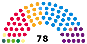![]() Colours denote the winning party, as shown in the results tables
