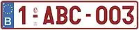 - Belgium uses red characters and is the only country not to use the standard black-on-white or black-on-yellow combination; with the introduction of European-style plates in November 2010, a slightly darker shade of red was chosen (RAL 3003) to improve legibility.