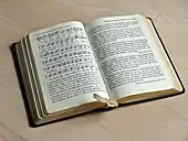 The intention to have a common German Protestant hymnal date back to the mid of the 19th century. A meeting of representatives of German state churches in Eisenach in 1853 resulted in a collection of songs that were widely known and preferred, Deutsches Evangelisches Kirchen-Gesangbuch in 150 Kernliedern, also known as Eisenacher Büchlein.[1] The EKG appeared in 1950, with 394 common songs. Each state church added its special hymns.[2]