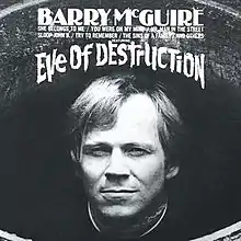 Eve of Destruction is the debut studio album released by American folk music singer-songwriter Barry McGuire, released in 1965. The album features McGuire's signature song "Eve of Destruction", written by P.F. Sloan, who also wrote many other songs on the album. It also features McGuire's cover versions of songs by several artists, including Bob Dylan.[1] Eve of Destruction peaked at No. 37 on the Billboard 200 album chart and spent a total of 21 weeks on the chart.[2]