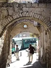 Both Ashkenazi and Sephardi families lived in Even Yisrael.[9] In the absence of a dedicated synagogue, prayer services were held in private homes or residents walked to the Beit Avraham synagogue in the nearby Mishkenot Yisrael neighborhood.[22] In the 1880s one of the residents of Even Yisrael, Zvi Aryeh Lunsky Hacohen, gave over his home for a permanent synagogue for the Ashkenazi community; it was named Beit Zvi.[23][22] Lunsky died in 1890.[22] The two-room dwelling was eventually remodeled into one long hall and the entrance to the synagogue, originally located off the central courtyard, was moved to the opposite side, facing Agrippas Street.[22]