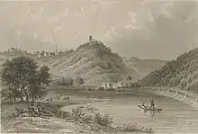 Everhard and his brother Johannes "Johannes, Everhardus nostra filli", was mentioned on March 12, 1271 at the foundation of a Vicario in remembrance of his brother's wife in the chapel of the monastery in Elsey.[2] He was 19 years old at the time and not yet married. A year later he and his mother "Aleydis comitissa in Lymburg, Everhardus fikius noster" [3] witnessed a donation of an estate to the same nunnery of Elsey on River Lenne not far from the castle Hohenlimburg.