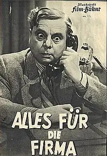 Everything for the Company (German: Alles für die Firma) is a 1950 West German comedy film directed by Ferdinand Dörfler and starring Erhard Siedel, Lucie Englisch and Viktor Staal.[1] [2] It was shot at the Bavaria Studios in Munich and on location in the city. The film's sets were designed by the art director Max Mellin.