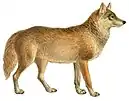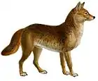 | Previously proposed evolution and branching from Eucyon towards the wolf (2008). [18][36]: p181 |