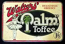 Walters Palm Toffee was established by Nathan Baraf Walters, a naturalised Romanian immigrant, as a toffee factory in Poplar, London in 1887. The company's main product was so named as such as it used Palm butter in its manufacturing. The company moved to a larger factory in Acton, London during 1926, and was incorporated in 1928. By 1935 the company employed around 800 people, but the factory was destroyed by fire later that year but was rebuilt. In 1957, Nathan Walters died and left the business to four Jewish charities, a will that his four sons contested unsuccessfully. By 1960 the company was losing money, and a friendly takeover by J A & P Holland was secured.[17][18]