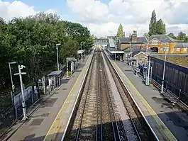 Ewell West railway station is one of two stations serving the town of Ewell in Surrey, England. The station is served by South Western Railway. It is 12 miles 78 chains (20.9 km) down the line from London Waterloo.