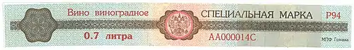 An excise stamp of Russia issued in 1994 for labeling wine