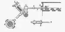 The gridiron valve[5] was one of the first forms of expansion valve.[1] The gridiron valve is an arrangement of two plates with overlapping slats. One plate can move so that its slats overlap either the slats of the other plate, or the slots between them, to thus be either open or closed. It has the advantages of a relatively large opening (up to half of the total area) and a rapid opening, needing to be moved by only one slat width to change from fully open to fully closed. Its disadvantage is that they do not seal particularly well. Because of the short actuating distance for a gridiron valve their valve timing would be relatively imprecise if used with an eccentric or similar. Some large steam engines later used them as primary valves, either as exhaust valves for LP cylinders[6] or as inlet valves in conjunction with trip-[7] or cam valve gear.[8][lower-roman 3]