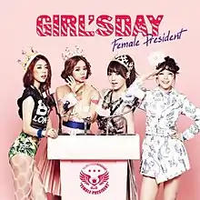 Three months later, after the release on March 7, Dream Tea Entertainment announced that the group would come back on June 24 with a repackaged version of the album.[8] It was also announced that the group will be also making a 'pool party' showcase for the re-release in the same day.[9] The repackaged album, titled Female President, includes one new song, used as promotional track of it, and an instrumental of the track, replacing the last three tracks of the original album's track list, making the repackaged album's track list include thirteen tracks.