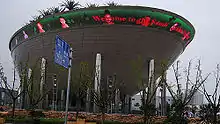 The Urban Future pavilion in Zone B. The exhibition was designed by the Spanish agency Ingeniaqued in cooperation with the Chinese artist Bu Hua. The concept involved an imaginary journey into the future, adopting an optimistic view of opportunities for developing habitable cities via a combination of technological progress and tradition.[15],