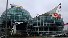 Three of the five theme pavilions were located in the Central Exhibition Building constructed by the host country. Covering an area of 11.5 hectares, it is the largest exhibition structure in the history of World Expositions.[6] The building was located near the Expo Axis, in Zone B. The total exhibition space of this building was 80,000 m2. A 7,000 m2 multifunctional room in the building's center had an atrium onto which some of the individual pavilions opened. Construction was completed in September 2009 before interior construction began.[7]