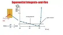 In the exponential integrate-and-fire model,[1] spike generation is exponential, following the equation: