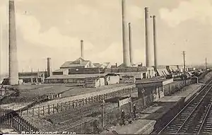 Eye Green railway station was a station in Eye, Cambridgeshire, on the Midland and Great Northern Joint Railway line between Peterborough and Wisbech. The station was opened by the Peterborough, Wisbech and Sutton Bridge Railway (PW&SBR) on 1 August 1866 and was originally named "Eye"; it was renamed "Eye Green" on 1 October 1875.[2] The PW&SBR became part of the Midland and Great Northern Joint Railway. It later came under the control of British Railways and was closed on 2 December 1957.[2] The station's name as given in some timetables "Eye Green for Crowland" was misleading, since a passenger would have a three-mile walk to Crowland.