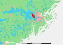 ![]() Färingsö in dark red, just west of Stockholm. | |