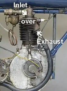 Some engines have been made with the reverse configuration, having the exhaust valve located in the cylinder head and the intake valve in the block. The ABC Skootamota began production with an engine of this configuration,[23][24] but this was changed to an overhead valve engine before production ended.[23]
