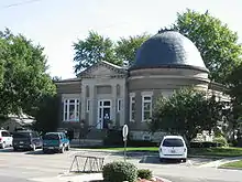 Fairbury was laid out on November 10, 1857 by Caleb L. Patton and Octave Chanute.[3] Like most Illinois towns of the 1850s, the original town of Fairbury was centered on a depot ground. It consisted of twenty-six blocks, each divided into fourteen to sixteen lots. There was no central public square, but one was later included in Marsh's addition. The plan used was virtually identical to that at Chatsworth, Illinois, including the street names, and the plan was very similar to that at Gridley and El Paso on the same railroad.[4]