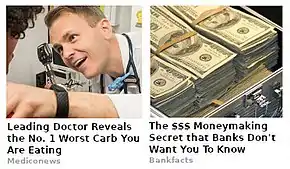 Fake news websites often have article titles that are incredible, prompting the user to click on it and read more.[17] This method of enticing readers to view content on their website often leads to exaggerated or even fake titles. When linked to from other sites, usually social media, having an extraordinary story title played a large part in tricking users who cannot tell if the article is real or not. This became especially relevant in the 2016 election. Additionally, out-of-context or manipulated images can cause readers to incorrectly assume an article's legitimacy, often due to their inflammatory image choice.[18][19]