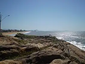 The Falésias de Marataízes Natural Monument is in the municipality of Marataízes, Espírito Santo.[1] It has an area of 42.20 hectares (104.3 acres).[2] The monument, in the south of the municipality, protects a landscape of falésias (cliffs) of great scenic beauty along the beach. The cliffs, made of mudstone, sandstone and conglomerate sediments from the Miocene, are constantly being eroded.[3] The cliffs are up to 30 metres (98 ft) in height, and extend from the Boa Vista do Sul region to the Praia dos Cações.[4] Erosion has caused cracks and gullies in the cliffs and masses of fallen rocks lie at their base.[2]