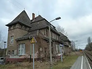 Falkenberg (Mark) station is a railway station in the municipality of Falkenberg (Mark), located in the Märkisch-Oderland district in Brandenburg, Germany.