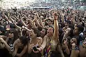 Women tend to be "more restricted in their leisure choices and opportunities than men,"[41] and their experiences within fandoms are typically demeaned to a more sexualized, emotional, or bodily experience, as opposed to intellectual interests.[42][43][44] For example, in music, women are more predominant, and accepted, within pop music fandoms, which Diane Railton describes as evoking an emotional and physical response, in contrast with the 'masculine' rock music, which is defined as 'serious' music with a 'meaning', focusing on political, cultural, and psychological discussion.[43] Due to this, women are rarely given space or voice within the intellectual realm of music.[43] According to Frank Zappa, "men come to hear the music and chicks come for the sex thrills,"[45] implying that women's involvement in fan communities is purely sexual, and that they are incapable of displaying intellectual or artistic interest in the music itself.[43] Those who do manage to become involved within the world of 'serious' music are often relegated to the realm of a 'groupie'.[42] A groupie, according to Cheryl Cline, is