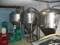 The brewery's equipment, much of which was obtained from the original brewhouse of the Brasserie d'Achouffe, is capable of producing 750 liter batch at a time, which is matured in cylindro-conical fermenters and aged for several weeks before being hand bottled and labeled on the premises. Beer is made about once per week, with many of the specialties being produced only once per year.[8] Fantôme's products are available only in corked and capped 750ml bottles of green glass and on tap.