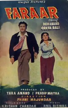 Faraar (transl.Absconding), also known as Dev Anand in Goa, is a 1955 Indian Hindi-language film directed by Phani Majumdar.[1] The film stars Dev Anand and Geeta Bali.[2]