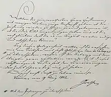 The red seal, which bore the family crest and which appeared on all products, was a sign of quality and authenticity. Each delivery was also accompanied by a signed document on which the directions for use were printed. According to the document, eau de Cologne was not exclusively intended for exterior use. It was described as good for dental hygiene, efficient against bad breath and a way of avoiding infectious diseases. In August 1785, a certain Mrs Duplessis from Nogent enquired whether eau de Cologne could in any way help her paralysed husband. In his response, Johann Maria Farina (III) suggested she dampen some pieces of cloth in the perfume before applying them to her husband's aching limbs and recommended she add 50 drops of eau de Cologne to his weekly drinking water. The letter ended as follows: “At least you run no risk of harming him in any way”.[9] However, the healing properties were removed from the instruction leaflet in 1811 and used only in advertisements. In 1803, the signature that had featured on the information leaflet was replaced by a stamp, which then made it possible to enclose a leaflet with each individual bottle.