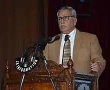 Sardar Farooq Khan (born 1955) is an Indian politician and former police officer who served with the Indian Police Service (IPS). He retired in 2013 as Inspector General of Police (IGP), Jammu and head of the Sher-I-Kashmir Police Academy at Udhampur.[1][2] Khan is known for the creation of the Jammu and Kashmir Police (JKP) Special Task Force (STF) as well as being its first head in 1995; STF would later go on to be renamed as the Special Operations Group (SOG).[1]