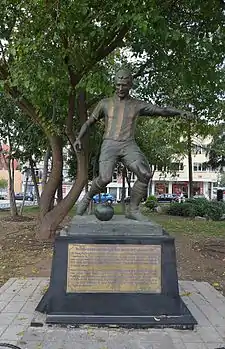 Alex is another Brazilian player who scored the most goals of all foreign players who have played for Fenerbahçe. He managed to become top scorer of the Turkish Süper Lig on two occasions (in 2006–07 and 2010–11), Turkish Footballer of the Year twice (in 2005 and 2010), as well as assist leader in the 2007–08 season of the UEFA Champions League.[57] Based on all those achievements, as well as his exemplary character and sportsmanship on and off the field, acknowledged by fans of Fenerbahçe and their rivals alike, he became the most successful and renowned foreign player to have ever played for the club and one of a few whose statue has been erected by the supporters of the club in the Yoğurtçu Park, in the near of Şükrü Saracoğlu Stadium.[58] Some of the other foreign top players who played for Fenerbahçe over the years include: Toni Schumacher (1988–91), Jes Høgh (1995–99), Jay-Jay Okocha (1996–98), Elvir Bolić (1995–2000), Kennet Andersson (2000–02), Ariel Ortega (2002–03), Pierre van Hooijdonk (2003–05), Nicolas Anelka (2005–06), Stephen Appiah (2005–08), Mateja Kežman (2006–09), Diego Lugano (2006–11), Roberto Carlos (2007–09), Dirk Kuyt (2012–15), Robin van Persie (2015–2018) and Nani (2015–16).
