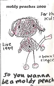 The Moldy Peaches: Fer the Kids/ Live 1999 contains two separate albums and is available in both cassette and CD formats. The artwork proclaims, "It's like two for the price of one!" Many songs on this album were later released with different titles. According to Moldy Peach Kimya Dawson, there are about 80 copies in existence.