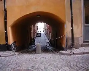 1. "Innerstaden: Gamla stan". Stockholms gatunamn (2nd ed.). Stockholm: Kommittén för Stockholmsforskning. 1992. p. 53. ISBN 91-7031-042-4.