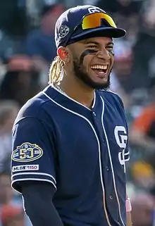Fernando Gabriel Tatís Medina Jr. (tah-TEESS; born 2 January 1999), nicknamed "El Niño" or "Bebo",[1] is a Dominican professional baseball shortstop and right fielder for the San Diego Padres of Major League Baseball (MLB). He is the son of former MLB player Fernando Tatís Sr. Tatís Jr. made his MLB debut in 2019, won the Silver Slugger Award in 2020, and was named an All-Star in 2021, before missing the 2022 season due to injury and a PED suspension.