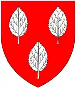 The Domesday Book of 1086 lists Baentone as one of the 27 Devon holdings of Walter of Douai, also known therein as Walscin.[2] Walter was also feudal baron of Castle Cary in Somerset.[3] At Bampton he established a castle,[4] the motte of which survives today. The manor was a very large holding of 76 households,[5] and previously to the Norman Conquest of England of 1066 had been held in demesne by King Edward the Confessor. As a manor in the royal demesne it had paid no tax.[lower-alpha 1] Walter had obtained it from William the Conqueror in exchange for the manors previously granted to him of Ermington and Blackawton.[6] According to the Book of Fees[7] the member manors of the barony of Bampton included: Duvale, Hele (possibly Hele, Clayhanger),[8] Doddiscombe, Hockworthy, Havekareland (possibly Hawkerland, Colaton Raleigh),[6] and Legh (Lea Barton, Hockworthy).[6] Walter held the manor of Bampton in demesne, but nevertheless he had three tenants who held land somewhere within the manor, namely two men named Rademar, one of whom appears to have been a tenant of several of Walter's Somerset manors.[9] One may possibly have been Rademar the Clerk, Walter's brother.[10] The third tenant was Gerard, thought to have been Walter's steward and his tenant at Bratton Seymour in Somerset.[10] The descent from Walter of Douai was as follows:[11]