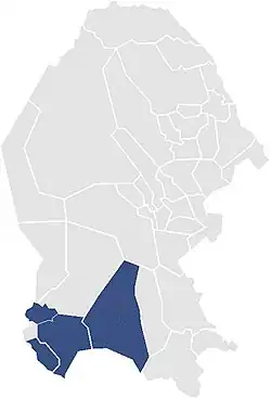 Under the 2005 districting scheme, Coahuila's Fifth District covers the municipalities of Matamoros, Parras, Viesca and the southern half of the municipality of Torreón.[1]