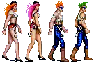 The street gang the player faces in the game, the Mad Gear Gang, takes their name from the 1987 overhead racing game Mad Gear by Capcom; the game was released as Led Storm outside Japan.[8] Many of the characters are named after 1980s rock musicians such as Axl Rose (Axl), Slash (Slash), Gene Simmons (Simons), Sid Vicious (Sid), Billy Idol (Billy), King Diamond (Abigail, named after King Diamond's second album, also dons facepaint similar to King Diamond's), Sodom (Sodom), Roxy Music (Roxy), The Damned (Damnd) and Poison (Poison),[3] with another, 2P (Two.P), being from the Capcom game Forgotten Worlds. Hugo Andore, another notable enemy character, is based on André the Giant. Because Capcom believed that "players would feel bad beating up a woman", they noted in the manual that the female opponent Poison was a "newhalf".[9]