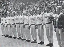 3 Martti Salminen, 4 Kalevi Ihalainen, 5 Ilkka Törrönen, 6 Erkki Saurala, 8 Pentti Vuollekoski, 9 Pauli Sarkkula, 10 Heinonen, 11 Erkki Lindén, 12 Vladi Marmo, 13 Reino Valtonen, 14 Alo Suurna (Coach: Alois Suurna)