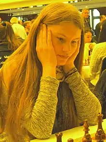 In 2015, Fiona Sieber won international youth chess tournament Jugendmasters 2015.[2] She has repeatedly represented Germany at European Youth Chess Championships and World Youth Chess Championships, where she won European Youth Chess Championship in 2016 in the U16 girls age group.[3] She two times played for Germany in World Youth U16 Chess Olympiads (2014, 2016) and won individual bronze medal in 2014.[4]