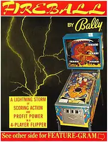 Fireball is a historically notable pinball machine designed by Ted Zale and released by Bally in 1972. The table was one of the first to have a modern sci-fi/fantasy type of outer space theme and featured elaborate, painted artwork on the sides of the table, painted by Dave Christensen.