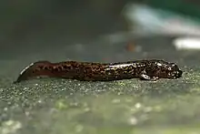 Onychodactylus fischeri is a lungless salamander found in Northeast Asia. It ranges through northeastern China, the Russian Far East, and the Korean Peninsula, but is only sporadically distributed within this range. Within South Korea, it is found chiefly in the high mountain valleys of Gangwon province, including the Gwangdeoksan and Daeseongsan regions. The adults feed on spiders, grubs, and insects. Common names include Fischer's clawed salamander and long-tailed clawed salamander.[1]