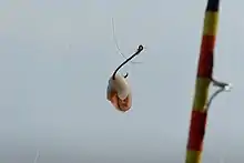 Fishing bait is any luring substance used specifically to attract and catch fish, typically when angling with a hook and line. There are generally two types of baits used in angling: hookbaits, which are directly mounted onto fish hooks and are what the term "fishing bait" typically refers to; and groundbaits, which are scattered separately into the water as an "appetizer" to attract the fish nearer to the hook. Despite the bait's sole importance is to provoke a feeding response out of the target fish, the way how fish react to different baits is quite poorly understood.[1]