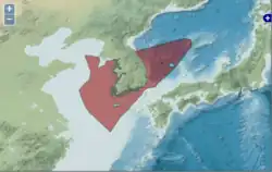 Whilst the ratification of the convention was settled in 1996 by both countries, it occurred that their declared zones were overlapping across the Yellow Sea. It was argued by South Korea that for a fair and equitable agreement, the 'median line' principle was to determine who had the right to claim the overlapped area. However, China disagreed, and insisted that their population and as well as their coastal extent should be the determining factor in this dispute.[24]