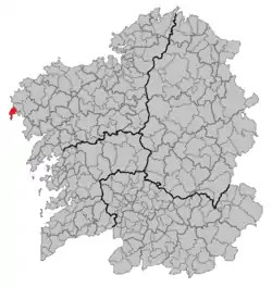 Fisterra (Galician pronunciation: [fisˈtɛrɐ]; Spanish: Finisterre) is a municipality in the province of A Coruña, in the autonomous community of Galicia, Spain. It belongs to the comarca of Fisterra. Fisterra is on Cape Finisterre, an alternative final destination for pilgrims on the Way of St. James who seek to travel beyond Santiago de Compostella.