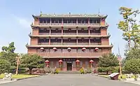 The Zhenhai Tower, also known as the Five-Story Pagoda, is a tower in Guangzhou, Guangdong. It is located in Yuexiu Park, in central Guangzhou. It now houses the Guangzhou Museum.