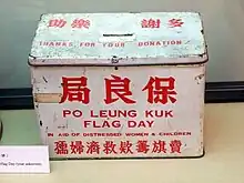 A flag day (Chinese: 賣旗日) in Hong Kong is a day on which public fundraising of charities takes place. Organised public fundraising in Hong Kong must be government-approved. Historically, it had been held only on a Saturday. It is currently, however, organised on Wednesdays and Saturdays. Flag-selling (賣旗) hours are from 7:00 in the morning to 12:30 in the afternoon on a flag day.[1]