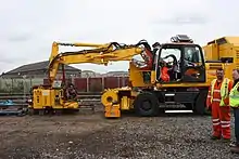 Railroads use flash welding to join sections of mainline rail together to create Long Welded Rail (LWR) in a factory setting or continuous welded rail (CWR) in track, which is much smoother than mechanically-joined rail because there are no gaps between the sections of rail. This smoother rail reduces the wear on the rails themselves, effectively reducing the frequency of inspections and maintenance.[2] Continuous welded rail is particularly used on high-speed rail lines because of the smoothness of the rail head. Flash welding is also beneficial because it allows dissimilar metals, including non ferrous metals, to be joined. This allows switches and crossings, which are generally composed of high manganese steel, to be effectively welded to carbon steel rail with the use of a stainless steel insert, while keeping the desired mechanical properties of both the rails and the crossings intact.[3] The ability of this single process to weld many different metals, with simple parameter adjustments, makes it very versatile. Flash welding is also used in the metal building industry to increase the length of the angle iron used to fabricate joists.[1]