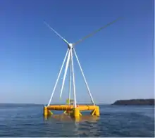 A floating wind turbine is an offshore wind turbine mounted on a floating structure that allows the turbine to generate electricity in water depths where fixed-foundation turbines are not feasible.[1][2] Floating wind farms have the potential to significantly increase the sea area available for offshore wind farms, especially in countries with limited shallow waters, such as Spain, Portugal, Japan, France and the United States' West Coast. Locating wind farms further offshore can also reduce visual pollution,[2] provide better accommodation for fishing and shipping lanes,[3][4] and reach stronger and more consistent winds.[5]