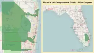 Florida's 20th congressional district is a U.S. congressional district in Southeast Florida. It is currently held by Democrat Sheila Cherfilus-McCormick, who was elected in a January 2022 special election, following the death of Alcee Hastings on April 6, 2021.[5] With a Cook Partisan Voting Index (CPVI) rating of D+25, it is one of the most Democratic districts in Florida.[4]