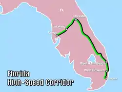 ![]() Federal Railroad Administration map of the Florida High-Speed Corridor | |