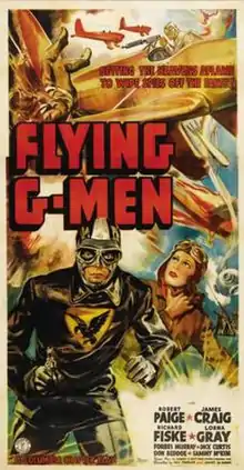 Flying G-Men is a 15-episode 1939 adventure film Film serial, directed by James W. Horne and Ray Taylor. The serial was the sixth of the 57 serials released by Columbia.[1] Four "Flying G-Men" battle with enemy saboteurs intent on destroying American military defences.[2]