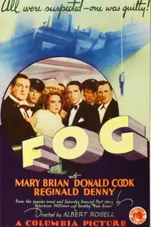 Fog is a 1933 American pre-Code thriller film directed by Albert S. Rogell and starring Mary Brian, Donald Cook and Reginald Denny.[1] It was produced and distributed by Hollywood studio Columbia Pictures. The Library of Congress holds a print of the film.[2]